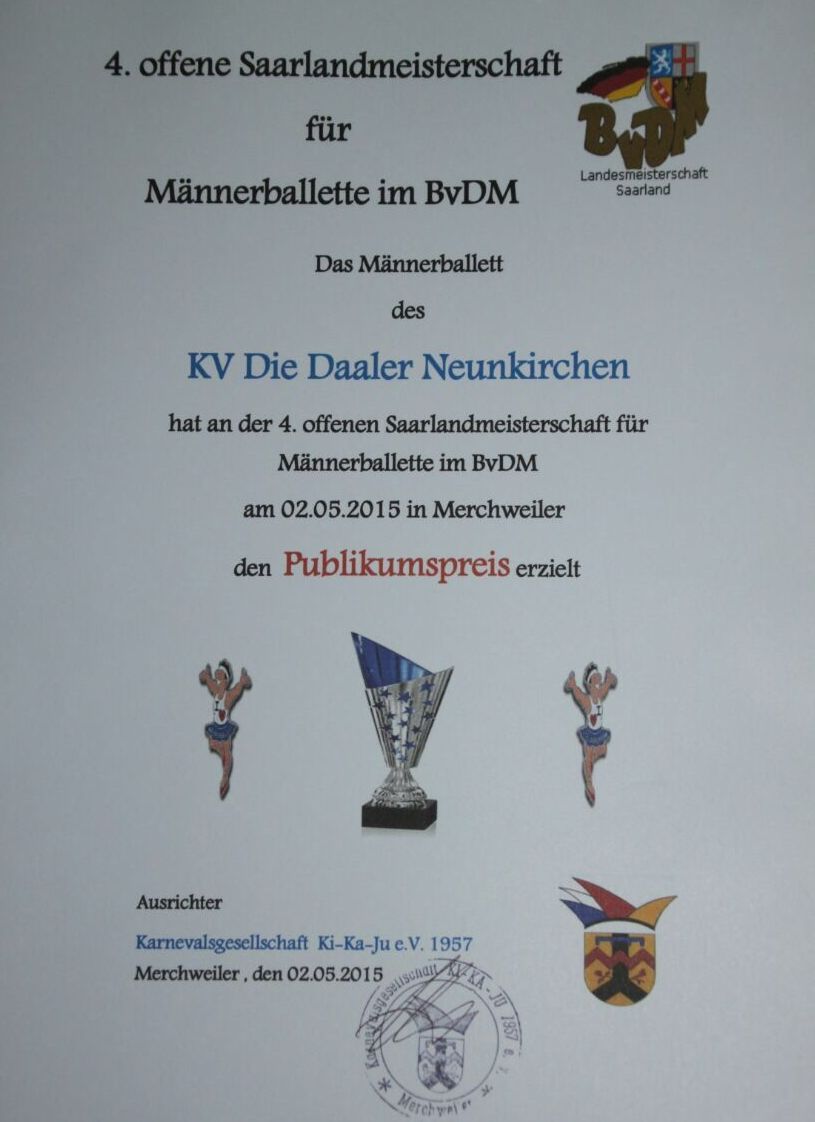 2.Platz bei der Saarlandmeisterschaft 2015 BvDM Wir sind Vize-Saarlandmeister